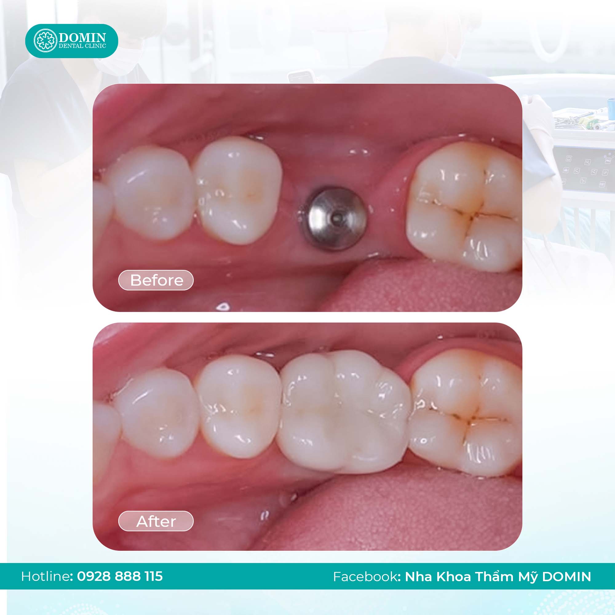 Nha khoa Domin là địa chỉ nha khoa chuyên sâu Implant uy tín hàng đầu với hơn hàng nghìn ca cấy ghép Implant thành công đảm bảo quá trình trồng răng của bệnh nhân diễn ra an toàn, không đau và thoải mái.